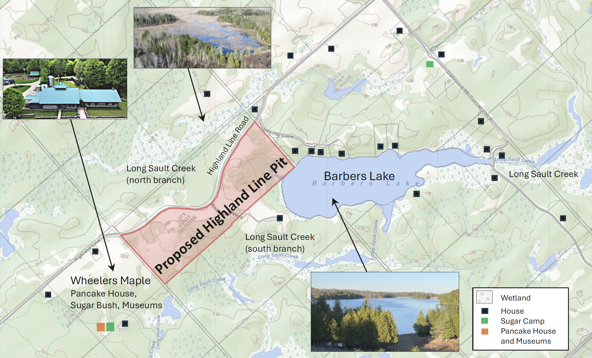 Proposed Sand and Gravel Pit on the Highland Line just south of McDonald’s Corners (in red)